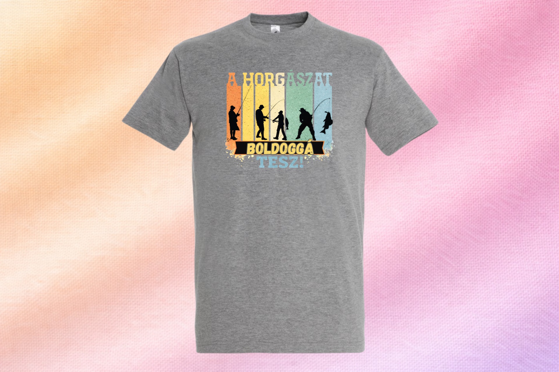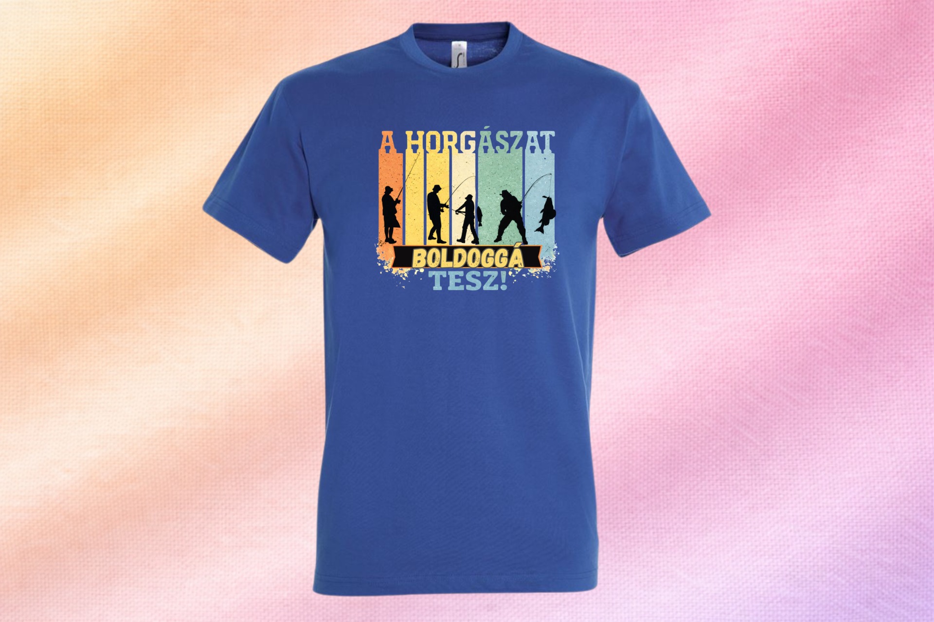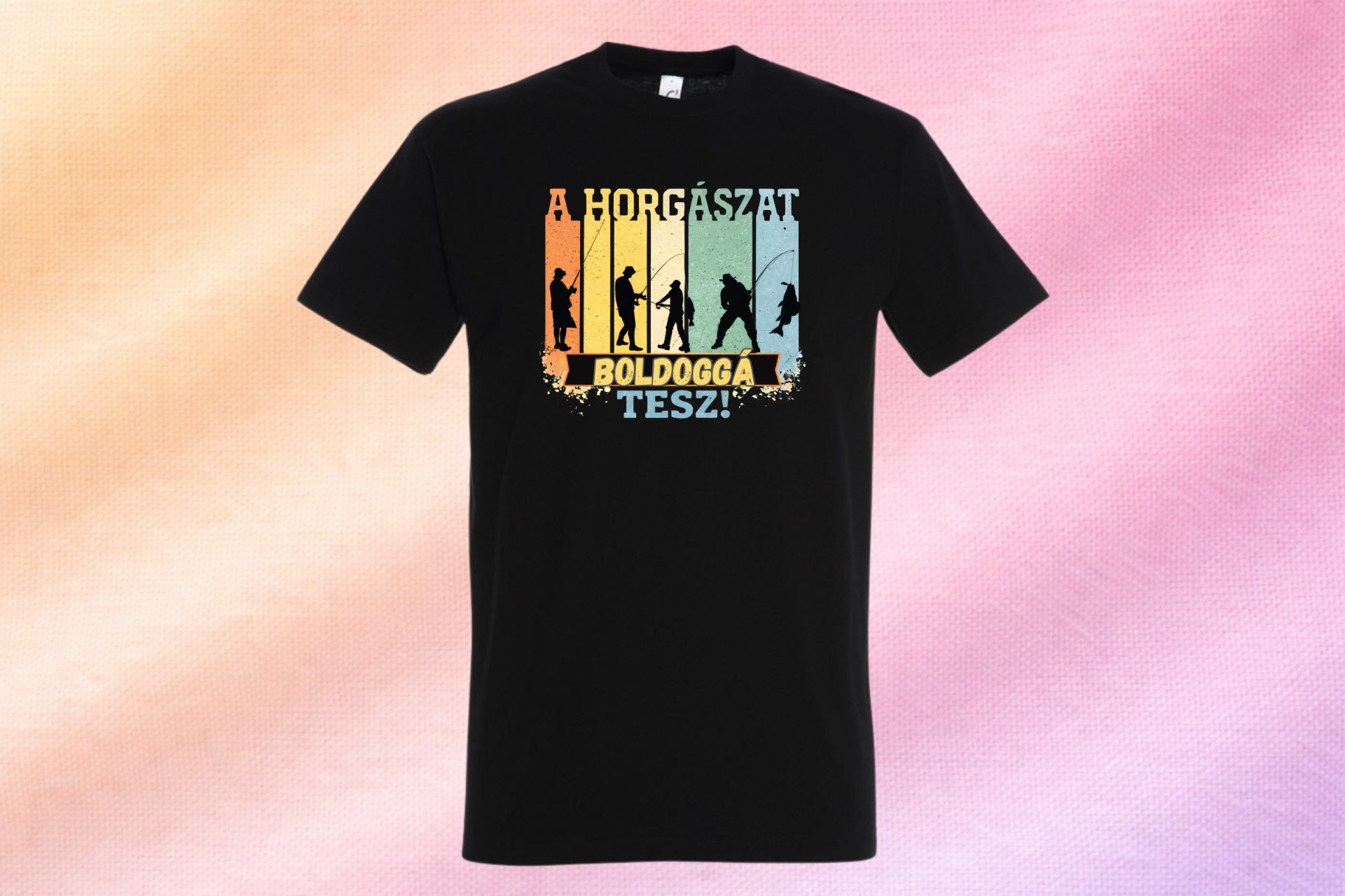 Ha máshol nem, a vízparton biztosan megtalálod a boldogságot! Ez a stílusos horgász póló tökéletes választás mindenkinek, aki szerint a legjobb terápia egy jó kapás.