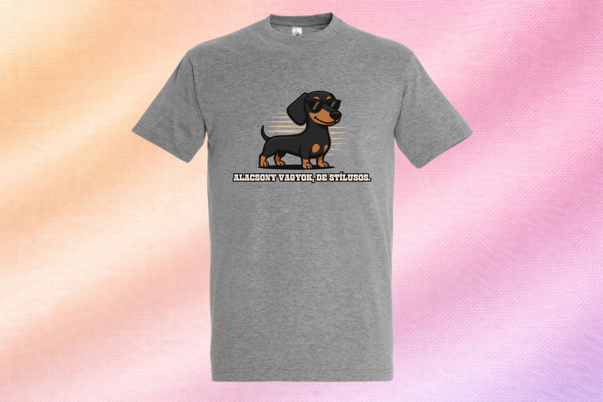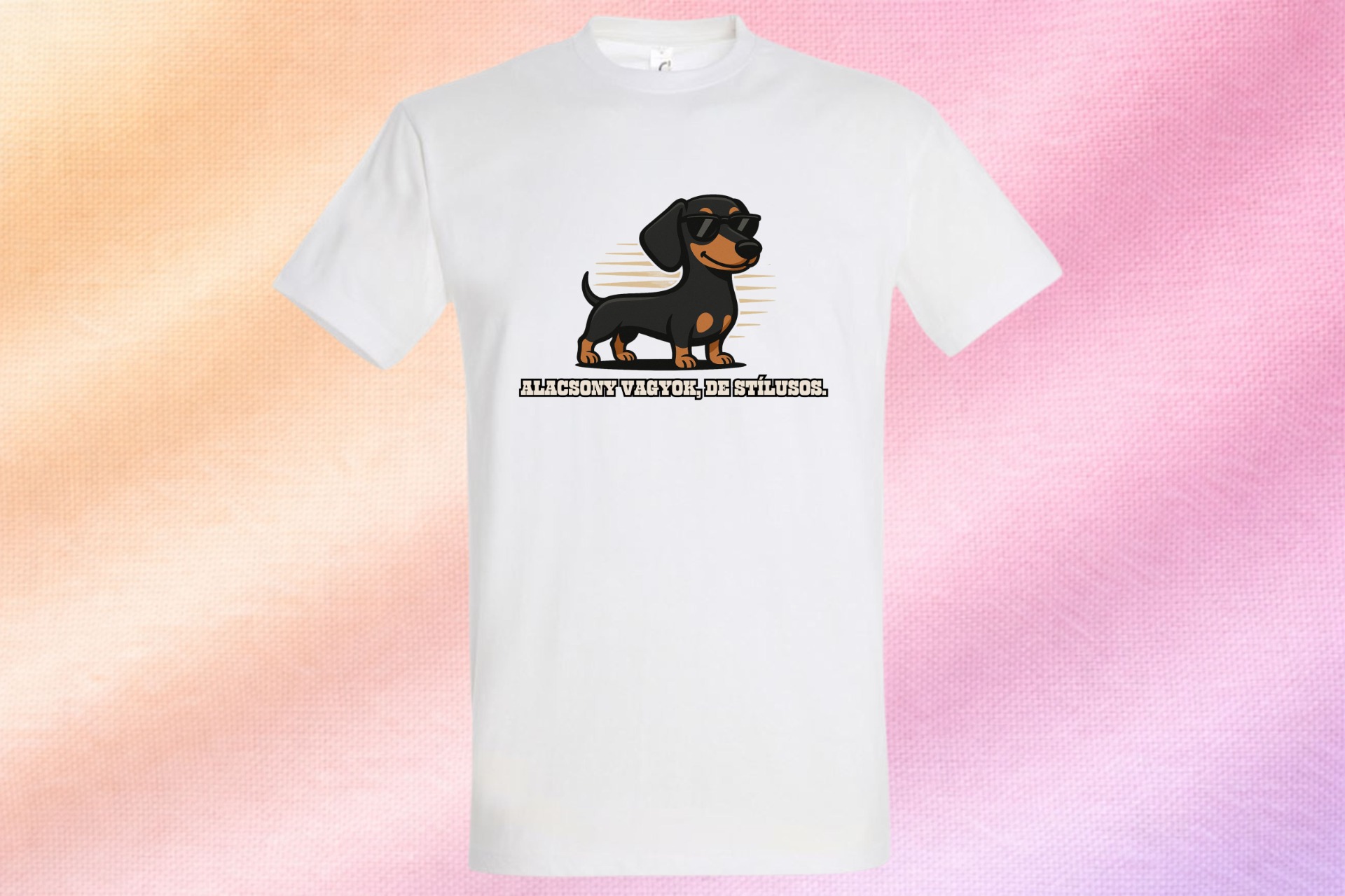 Alacsony? Igen. Stílus? Maximumon! Ez a vagány tacskós póló tökéletes választás mindenkinek, aki tudja, hogy nem a méret számít, hanem a kisugárzás. A napszemüveges kutyus garantáltan ellopja a show-t bárhol megjelensz.