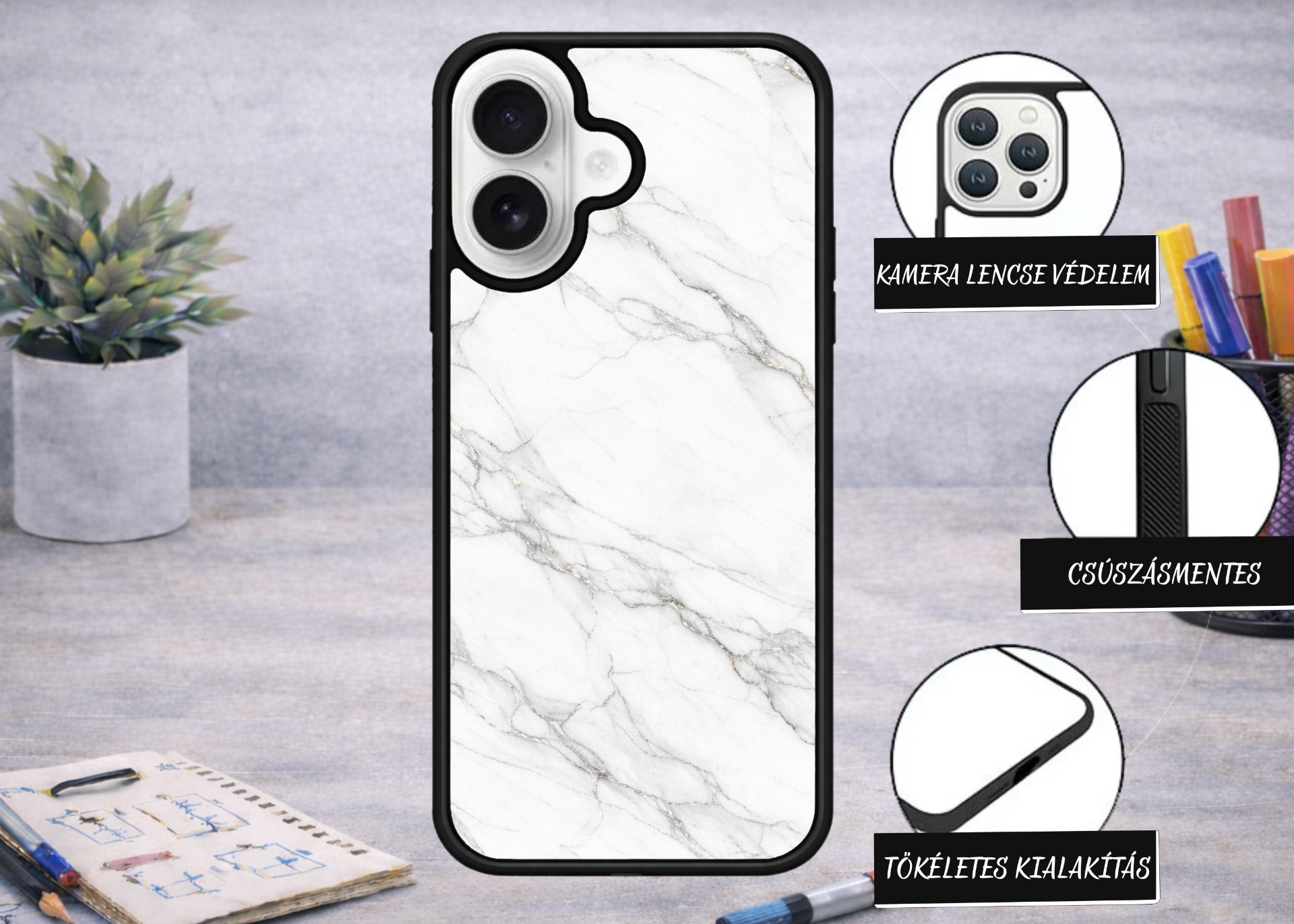IPHONE 17 FEHÉR MÁRVÁNYMINTÁS TELEFONTOK