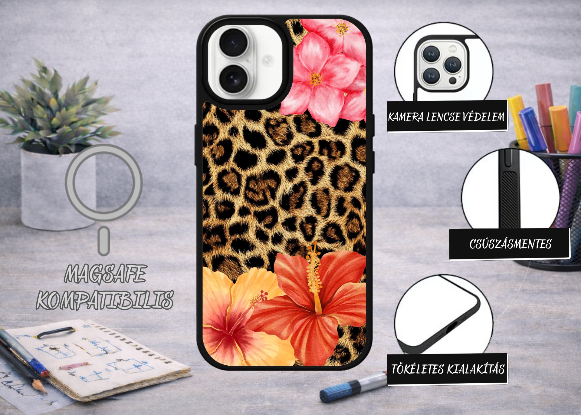 IPHONE 17 MAGSAFE LEOPÁRD VIRÁG TELEFONTOK