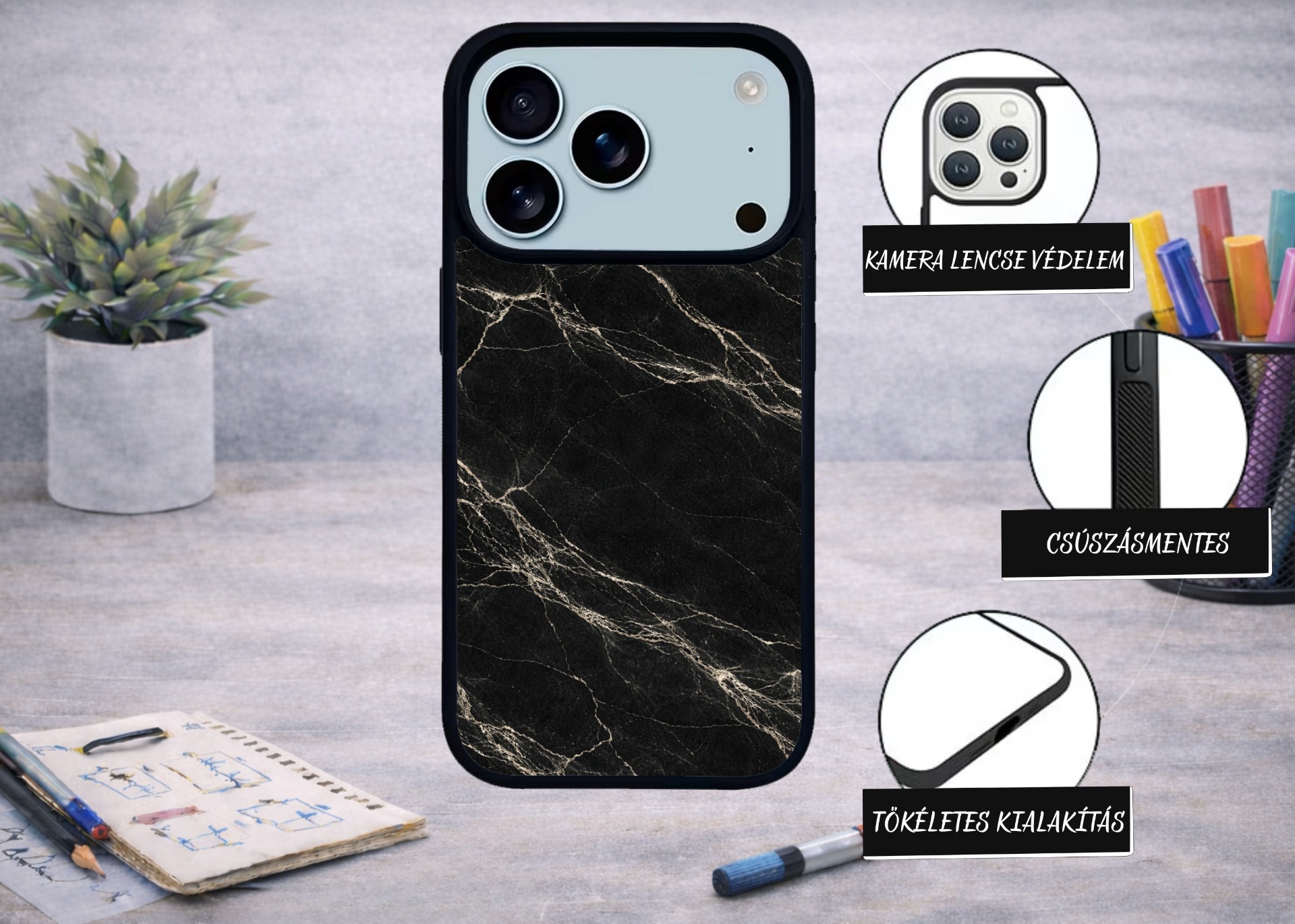 IPHONE 17 PRO MAX FEKETE MÁRVÁNYMINTÁS TELEFONTOK