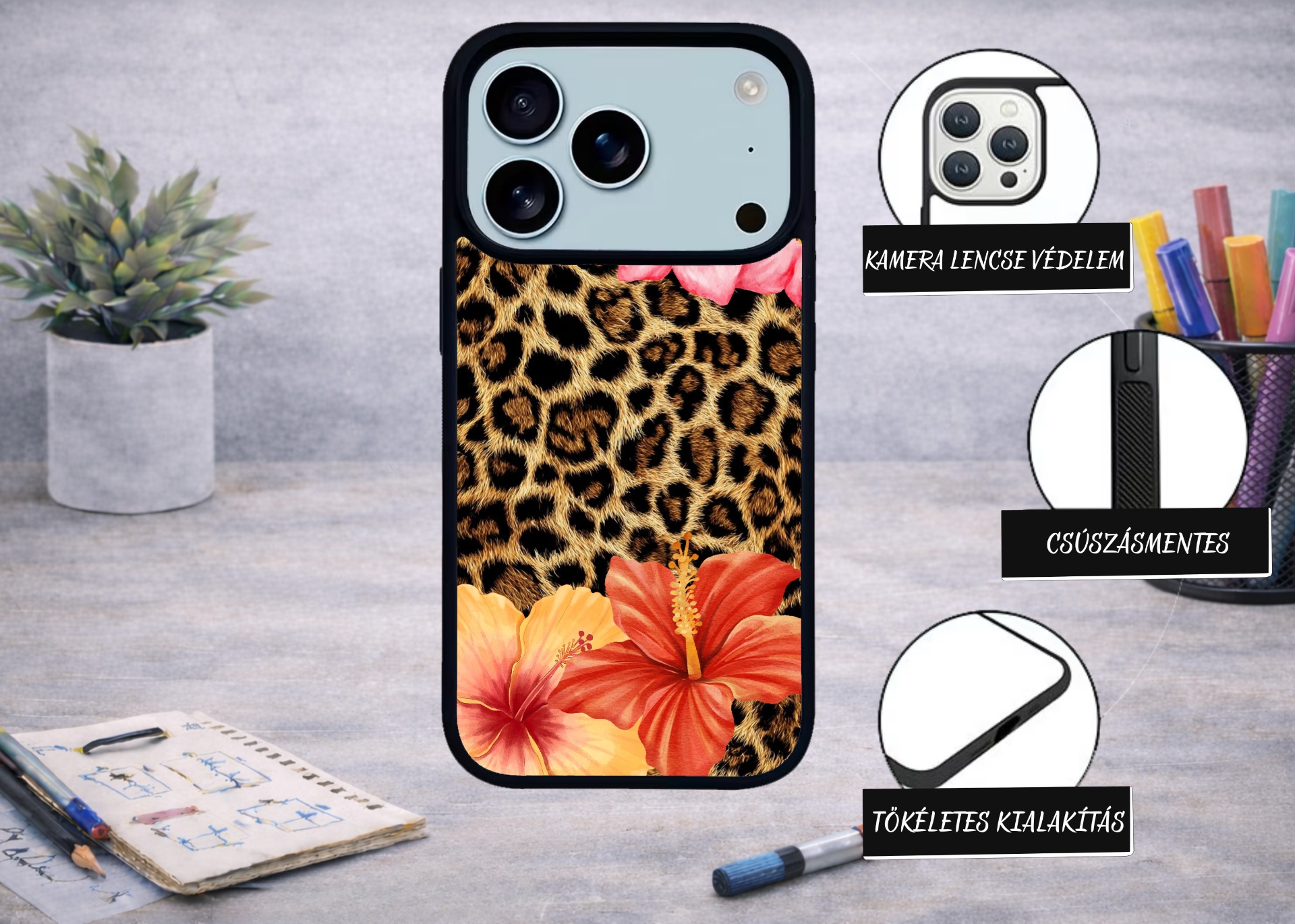 IPHONE 17 PRO MAX LEOPÁRD VIRÁG TELEFONTOK