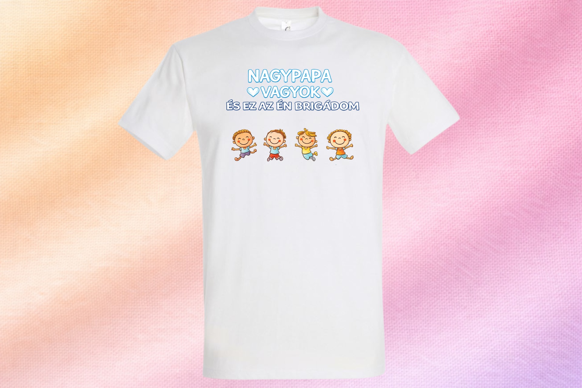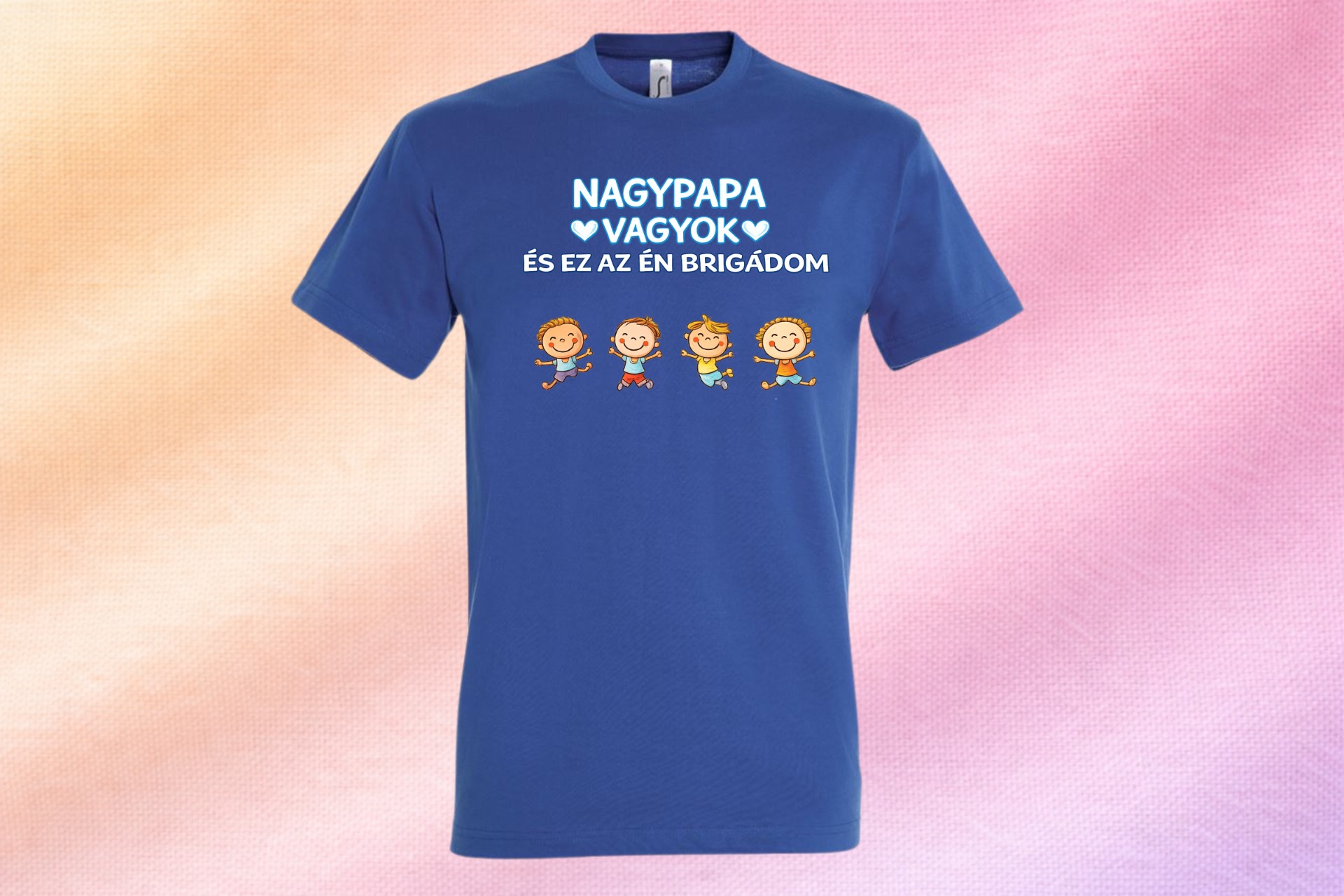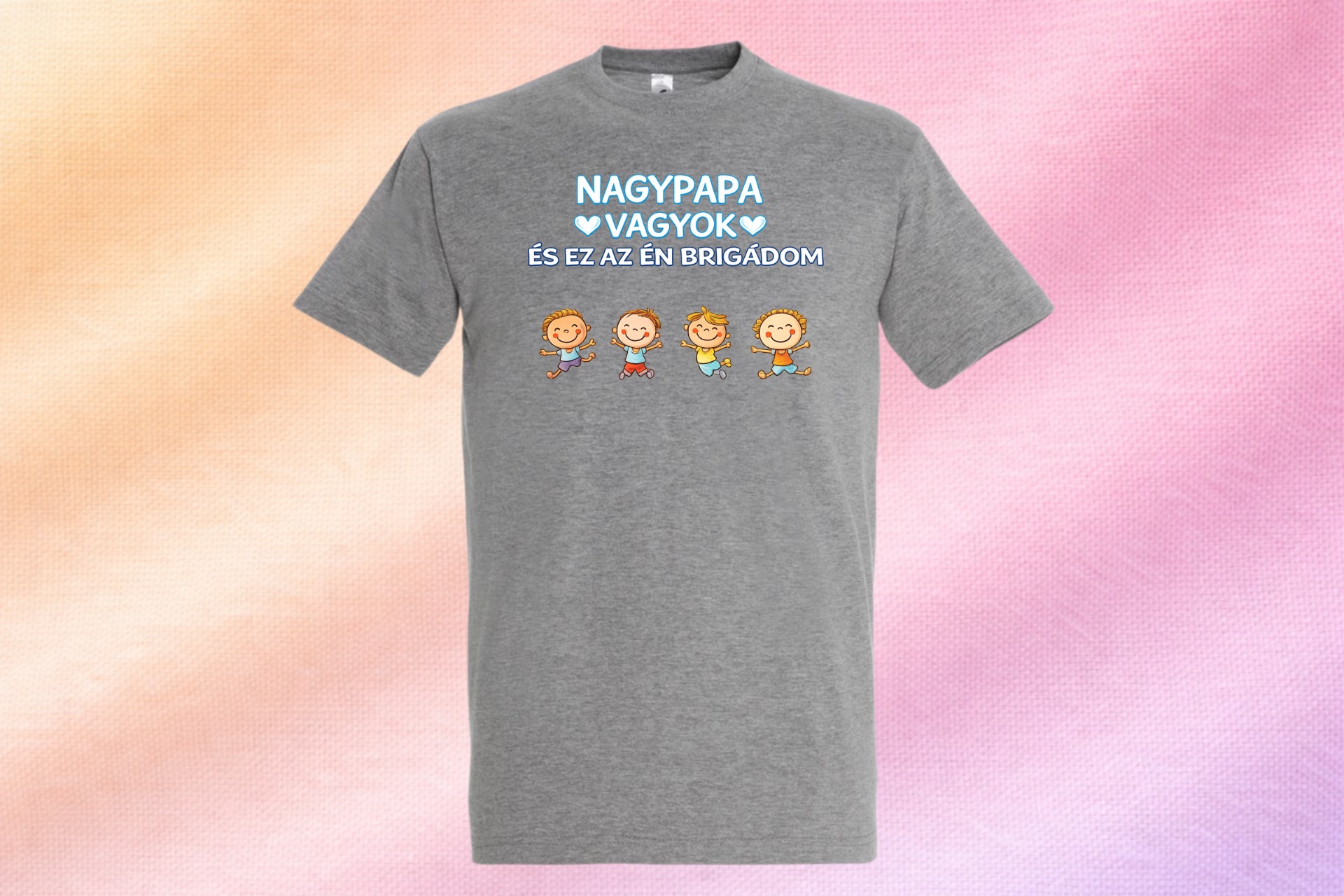 Vidám és szeretetteljes póló minden büszke nagypapának! A "Nagypapa vagyok és ez az én brigádom" felirat és a játékos grafika garantáltan mosolyt csal az arcokra, miközben tökéletes ajándék családi alkalmakra vagy hétköznapi viseletre.