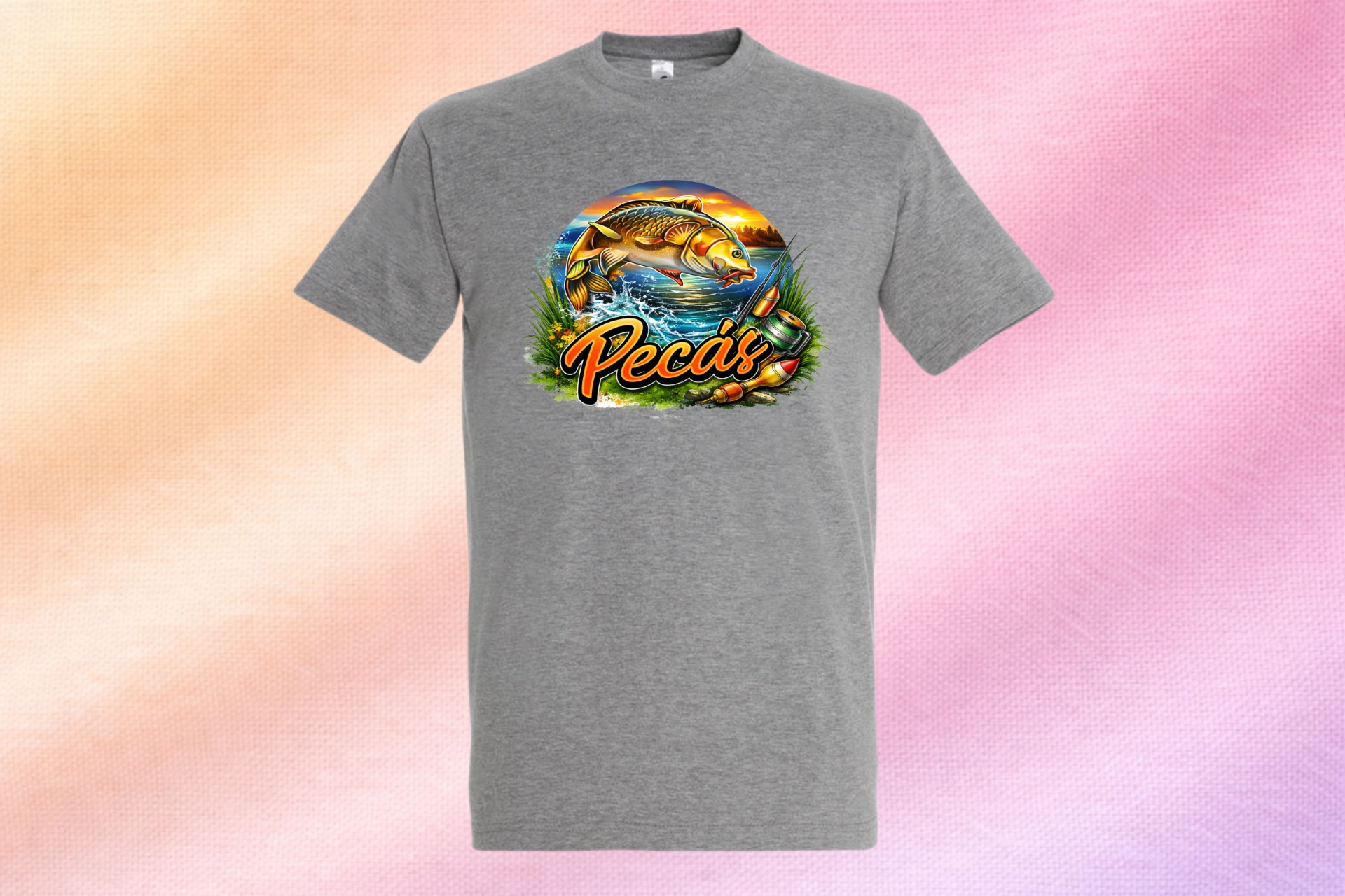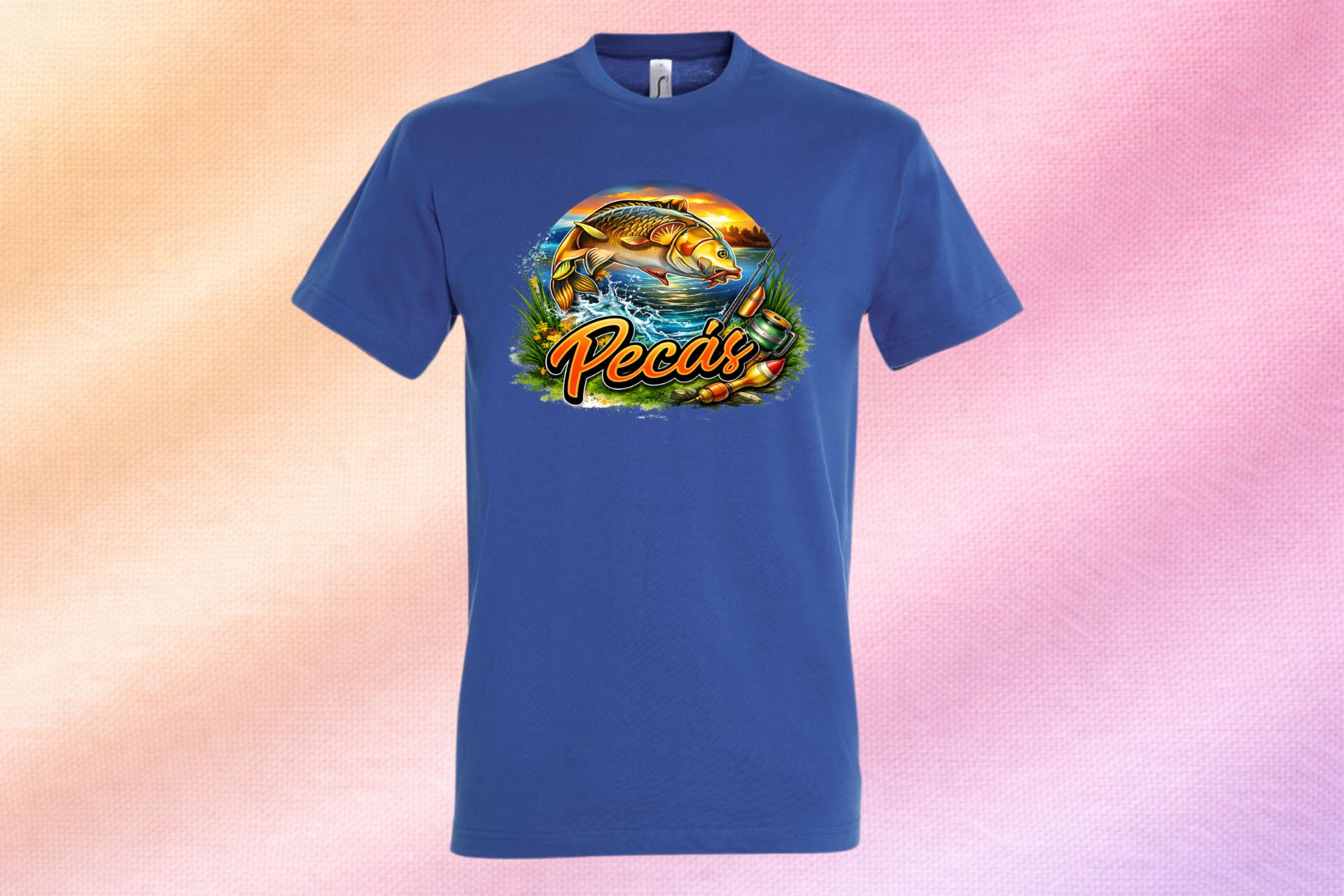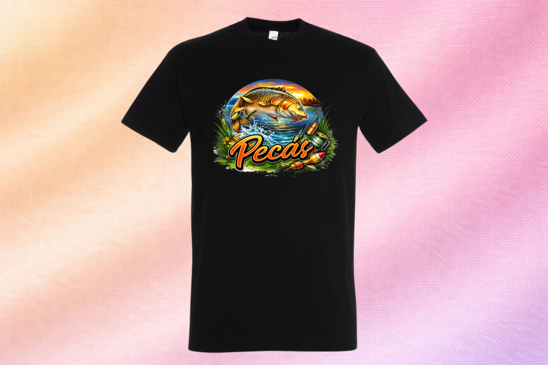 Nem kérdés, ki a vízpart királya! Ez a látványos "Pecás" póló tökéletes választás minden horgásznak, aki büszkén vállalja a szenvedélyét – és nem fél megmutatni sem.